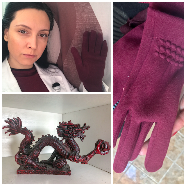 В сериала видяхме, че Денерис е с ръкавици в същия тъмночервен цвят - та нали зимата в Уинтърфел дойде. По нашите ширини през април вече не е подходящо да се носят ръкавици, но все пак си сложих едни. Да, не са кожени, но пък са мекички и в студеното време си ги нося с удоволствие.